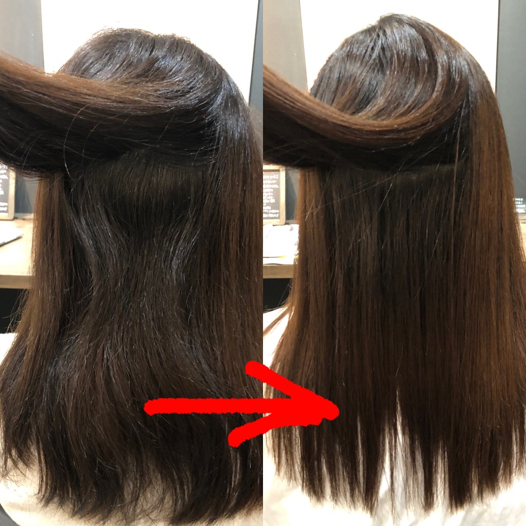くじら美容室の縮毛矯正は髪質改善も同時進行でやっていきますので、ツヤやハリもでます。